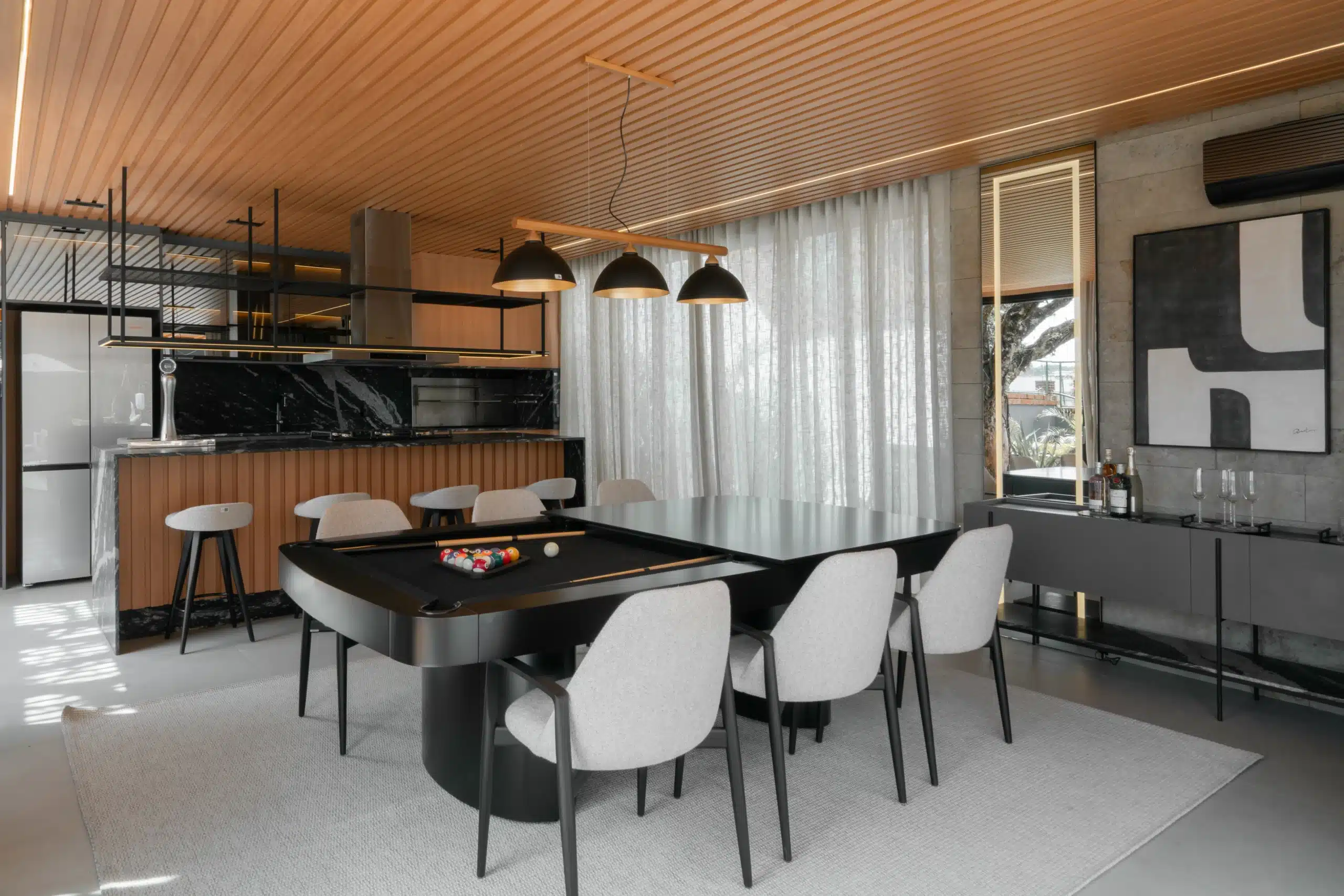 Sin la tapa de buffet, en la configuración de mesa de billar.